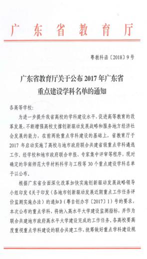 图1 《广东省教育厅关于公布2017年广东省重点学科名单的通知》