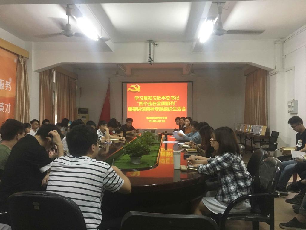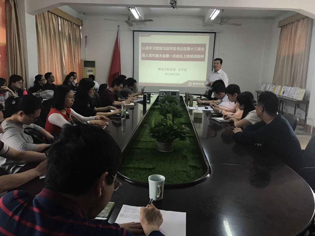 3月29日,机电学院党委负责人方少武同志根据学校《关于做好2018年春季学期党委书记、校长和二级学院党组织书记、院长上第一堂思想政治理论课工作的通知》精神,为机电学院学生上了题为《认真学习贯彻习近平总书记在第十三届全国人民代表大会第一次会议上的讲话精神》的思政第一课;3月30日,杨勇院长为学生上了题为《习近平“三个第一思想”引领新时代青年的奋斗之路》的思政第一课。4月11日下午,机电学院党委中心组召开专题学习会,深入学习贯彻习近平总书记对广东“四个走在全国前列”的重要指示精神与《习近平谈治国理政》第二卷,党委负责人方少武同志、杨勇院长、陈郁芬副书记等作了中心发言,与会的中心组成员也结合实际畅谈了学习体会。4月12日下午,机电学院召开全体教师大会,党委负责人方少武同志在会上为全体教师作了题为《认真学习贯彻习近平总书记在第十三届全国人民代表大会第一次会议上的讲话精神》的学习辅导报告,全面深刻解读习近平总书记“四个走在全国前列”重要讲话精神和习近平总书记在全国人大闭幕大会上的讲话精神。4月12日,机电学院党委还按照学校党委的要求,认真组织机电学院师生党支部召开学习习近平总书记“四个走在全国前列”重要讲话精神和《习近平谈治国理政》第二卷专题组织生活会,各党支部结合当前全省正在开展的“大学习、深调研、真落实”工作,紧紧围绕专题组织生活会的学习主题,把学习习近平总书记“四个走在全国前列”重要讲话精神和《习近平谈治国理政》第二卷作为重点内容,将有关精神和内容传达到每名党员,引导广大师生党员学以致用谋划推动工作和学习,为建设特色鲜明的高水平技术师范大学提供坚强的组织保障。在专题组织生活会召开之后,机电学院师生纷纷通过机电教师先锋、机电学生先锋微信群留言,畅谈自己的学习心得和学习体会。