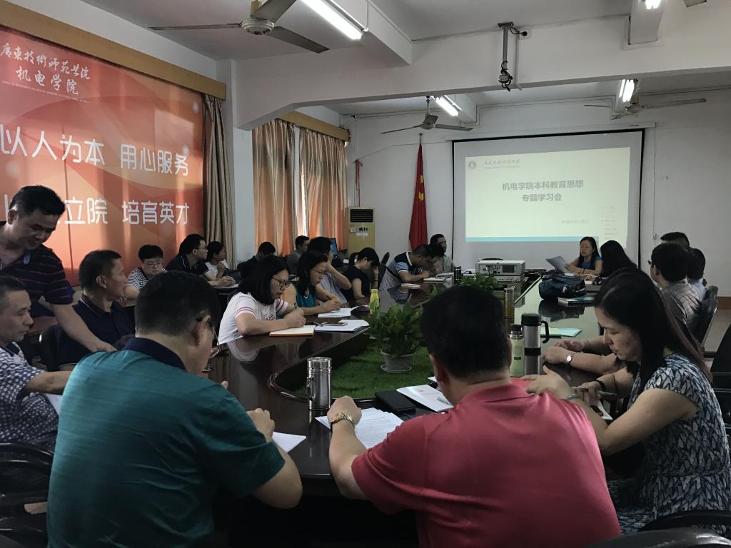 根据《广东省教育厅关于学习贯彻教育部“新时代全国高等学校本科教育工作会议”精神的通知》(粤教高函〔2018〕112号)要求,以及《广东技术师范学院本科教育思想大学习大讨论实施方案》的相关工作部署,机电学院领导班子高度重视,9月7日,学院召开党政联席会议扩大会,专题学习传达省厅和学校有关开展本科教育思想大学习大讨论的文件精神,并成立以院长和书记为组长的本科教育思想大学习大讨论工作领导小组,切实加强对本次大学习大讨论工作的组织领导,讨论制定了《机电学院本科教育思想大学习大讨论实施方案》,通过学院QQ群和微信群上传有关本科教育思想大学习大讨论的学习资料给全院教工进行自学,有计划开展贯彻落实工作。