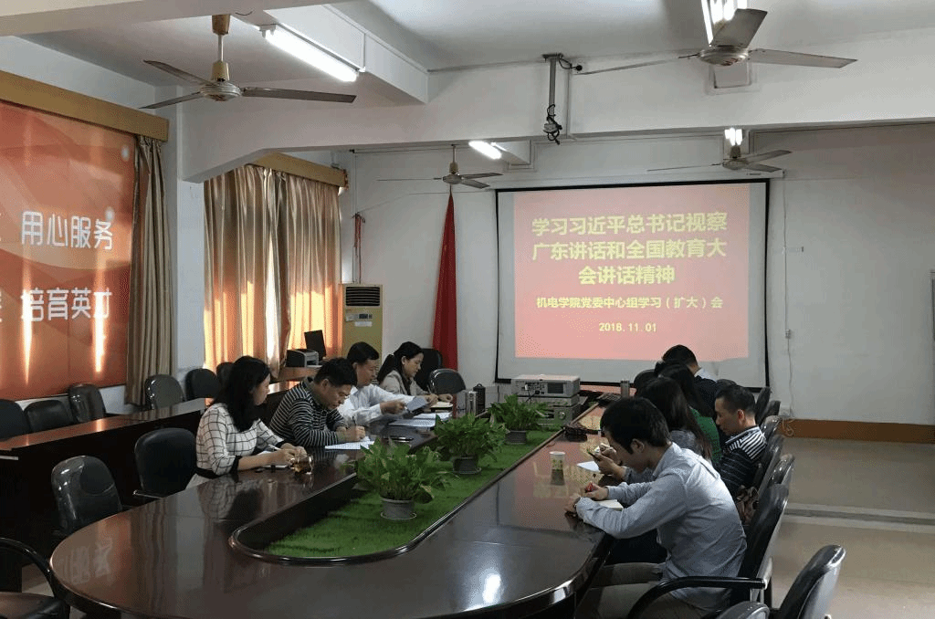 窗体顶端窗体为深入学习贯彻习近平总书记视察广东重要讲话和在全国教育大会上重要讲话精神,增强广大党员干部“四个意识”、坚定“四个自信”,坚持“两个维护”,提高我院党员干部的思想政治修养,自觉承担起举旗帜、聚民心、育新人、兴文化、展形象的使命任务,开创机电学院新时代事业发展的新局面。11月1日,机电学院党委理论学习中心组召开专题学习会,深入学习习近平总书记视察广东重要讲话和在全国教育大会上的重要讲话精神。学院党政领导班子成员、党委委员、党政办公室主任、教工党支部书记和全体辅导员参加了会议。会议由学院党委负责人方少武同志主持。