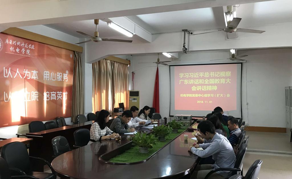 为深入学习贯彻习近平总书记视察广东重要讲话精神,根据学校党委《关于学习贯彻习近平总书记视察广东重要讲话精神的工作方案》要求,机电学院党委开展了一系列学习贯彻习近平总书记视察广东重要讲话精神活动。