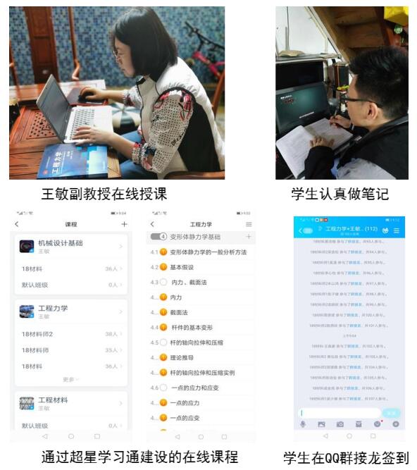 王敏副教授的《工程材料》课程采用超星学习通开展线上教学工作,共有107名学生参与在线教学。学生通过学习通观看微课视频,完成签到和在线作业。由于学习通无法发布签到,所以先在QQ群完成签到,课间在学习通签到。在开课前一周,王敏老师已经将学习任务安排告知学生,让他们提前做好开课准备。为避免网络塞车,王敏老师将教学大纲,PPT,电子教材,作业,通知以及在线学习情况安排等均已上传至班级QQ群,并将QQ群作为授课备选方案。在线讨论,辅导答疑等均在QQ群进行。截止目前,教学工作一切顺利进行。