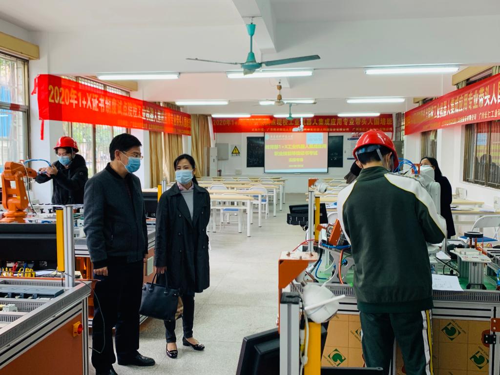 2021年1月5日,我校首个“1+X”制度试点—工业机器人集成应用职业技能等级证书实操考试在机电学院顺利开考,来自东莞理工学校的50名学生参加了此次考试。学校教务处处长向凯、教师培训与继续教育学院院长覃易寒、机电学院领导到场巡考。