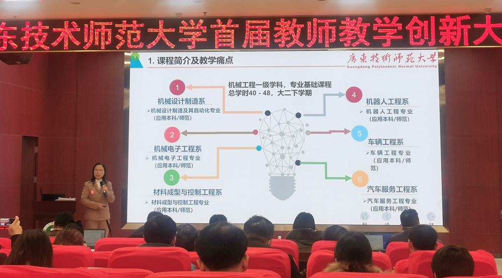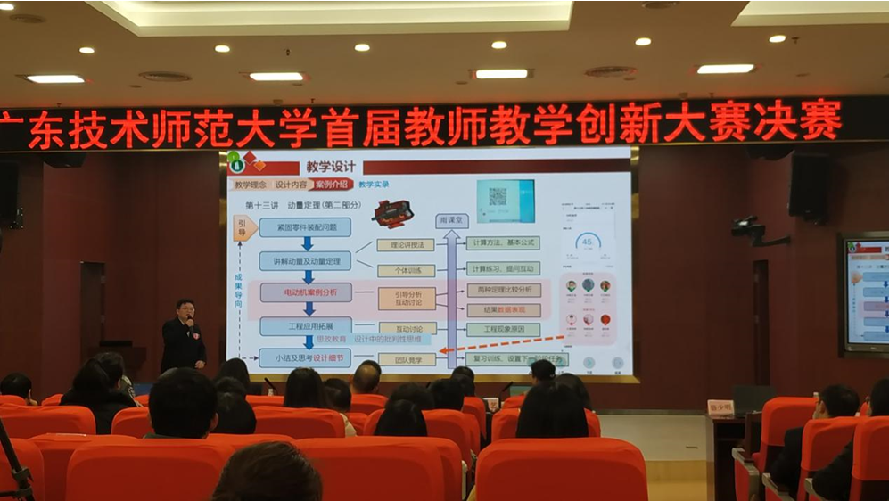 1月9—10日,广东技术师范大学首届教师教学创新大赛决赛在东校区第一教学楼208讲学厅隆重举行,全校共有33名教师分别参加了教授组(共8人)、副教授组(共8人)和中级组(共17人)的比赛,为体现比赛的客观公正和专业原则,决赛所有评委都来自兄弟单位的专家。本次大赛由学校教务处主办,各参赛教学单位近三年新进教师和党政领导都到场观摩了比赛。经过两天紧张激烈的比赛,机电学院推荐参赛的陈飞昕老师荣获中级组特等奖,徐兰英教授荣获教授组一等奖,机电学院因组织工作表现突出,荣获优秀组织奖!