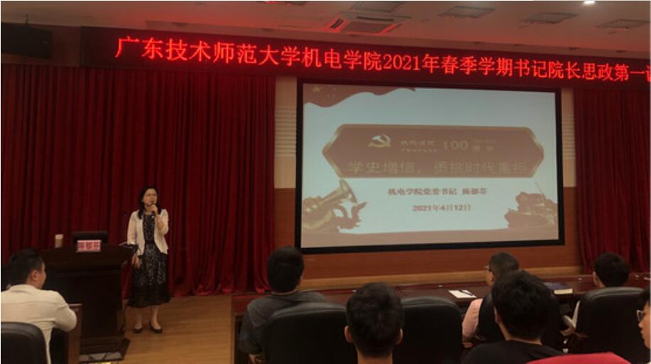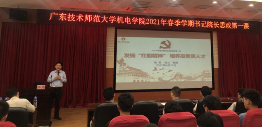 为贯彻落实学校党委《关于做好2021年春季学期党委书记、校长和各学院党组织书记、院长上第一堂思想政治理论课工作的通知》要求,进一步推动党史学习教育,帮助学院学生树立正确的党史观,4月12日,机电学院书记、院长春季学期第一堂思想政治理论课在白云校区多功能报告厅开讲。