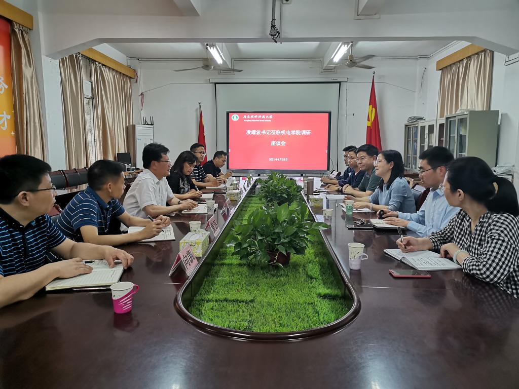 凌靖波认真听取了工作汇报,对机电学院的扎实举措表示了肯定,并就机电学院进一步凝练发展特色、加强学科和师资队伍建设、提升人才培养质量等方面提出六点要求:一是在本科人才培养质量上下功夫。要以创新班、产业学院为抓手,突出人才培养特色,把学生就业和杰出校友作为人才培养质量的重要指标;二是在学科建设上下功夫。要集中力量,整合资源,不断提升机电学院学科建设水平,为学校做强工科学科做贡献;三是在师资队伍上下功夫。人力资源是第一资源,人才引进要更加精准,要瞄准目标,下大力气引进高层次人才;四是在社会服务上下功夫。要多走出去,加强校企合作,促进产教融合,更好服务社会;五是在内部治理上下功夫。要进一步完善制度体系,提升治理能力,要进一步优化完善绩效工资二次分配制度,调动教师工作积极性;六是在党的建设上下功夫。党史学习教育要有针对性,要进一步营造浓厚的学习氛围,要切实为师生办实事解难题,实现党建与业务发展双融双促。
