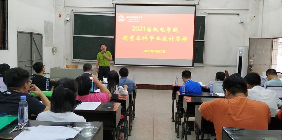 机电学院高度重视本科毕业设计工作,5月17日下午,机电学院在西校区多媒体课室(1)举行了2021届优秀本科毕业设计答辩。机电学院党委书记陈郁芬、学院院长杨勇、副院长徐兰英、副院长王敏参加了此次答辩会议。肖苏华教授、高吉祥教授、李纬华副教授、刘一雄副教授、梁华卓博士、文奇博士等六位老师担任评委。11名在第一批答辩中表现优异的学生参加了此次优秀毕业设计答辩,共100余名师生观摩了此次毕业设计优秀答辩。