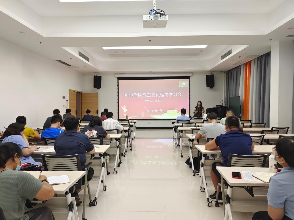 为进一步加强全体教工的政治素养和理论水平,推进党史学习教育常态化,8月26日下午,机电学院组织全体教职工在西校区综合楼104室进行政治理论学习,会议主要有几个内容:一是传达并学习2022年中层领导干部暑期读书班的精神;二是安排了部分教工代表作主题发言。会议由学院党委书记陈郁芬主持。