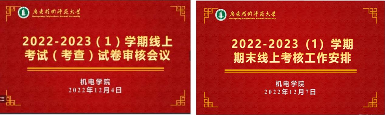 根据学校教务处统一部署,机电学院认真贯彻落实《关于做好我校2022年秋季学期期末课程考核有关工作的通知》、《关于做好2022-2023学年第一学期期末线上考核工作的通知》精神,机电学院成立线上考核工作领导小组,根据专业、课程特点和实际情况,组织系主任、任课教师全面研讨,确定适合于课程性质的合理考核形式,并按照“一课一案”原则制定课程线上考核方案,组织任课教师、监考教师及学生按照确定的考试方案精心筹备,进行线上考试模拟测试。
