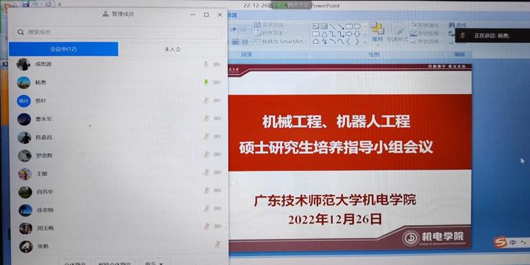 为进一步修订完善机械专业硕士学位研究生人才培养方案,机电学院于12月26日上午,组织召开了机械专业硕士学位研究生人才培养方案研讨会暨研究生培养指导小组会议(线上),广东工业大学成思源教授、广东省科学院曹永军教授级高级工程师、机电学院院长杨勇教授等研究生培养指导小组全体成员参加了会议,会议由机电学院副院长王敏教授主持。
