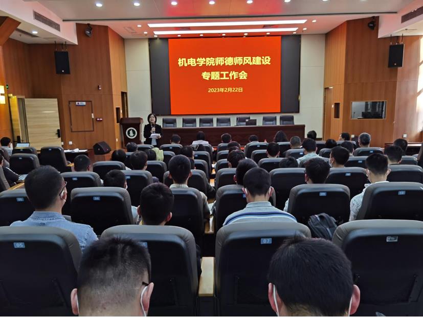 2月22日,机电学院在西校区实训楼101召开师德师风建设专题工作会议暨意识形态教育专题会议,机电学院党政领导班子成员、全体教职员工参加此次会议。会议由学院党委书记陈郁芬主持。
