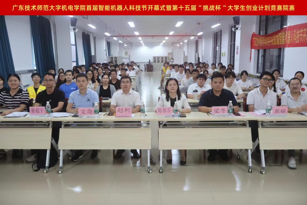 为进一步深化创新人才培养,提高学生创新素养与实践能力,鼓励学生积极投身科技创新实践,10月16日,机电学院于白云校区第四实训楼201室举办首届智能机器人科技节开幕式暨第十五届“挑战杯”大学生创业计划竞赛院内选拔赛。机电学院党委书记陈郁芬、校团委副书记梁冬、学院党委副书记赵利出席活动。学院专任教师肖苏华教授、文奇副教授、大学生科技创新中心副主任黄福、新进博士代表崔超宇博士担任本次活动嘉宾评委。