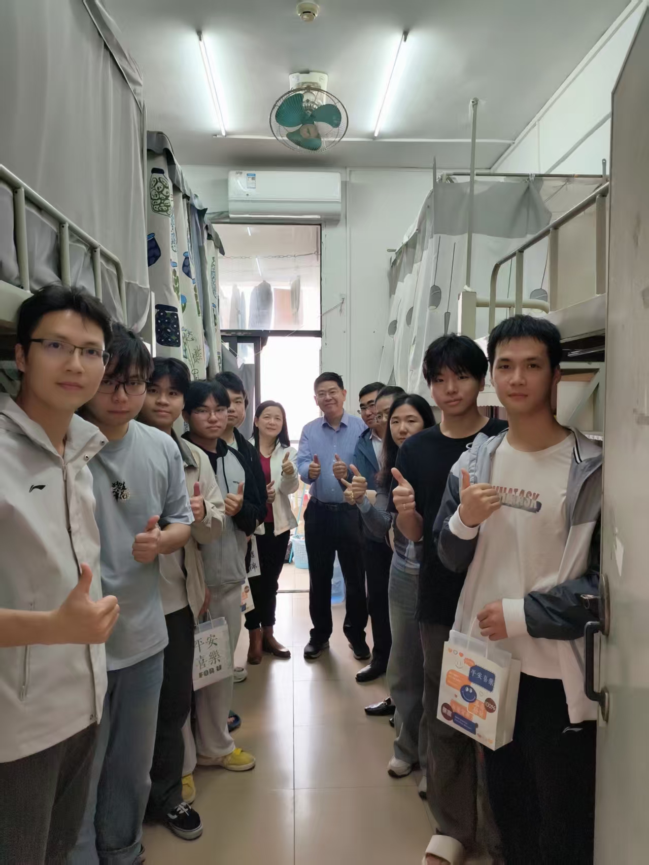 12月12日下午,机电学院开展了2025年“研途送暖,温情护航”考研慰问活动。机电学院班子成员带领毕业班辅导员深入学生宿舍,为即将奔赴考场的学子加油鼓劲。